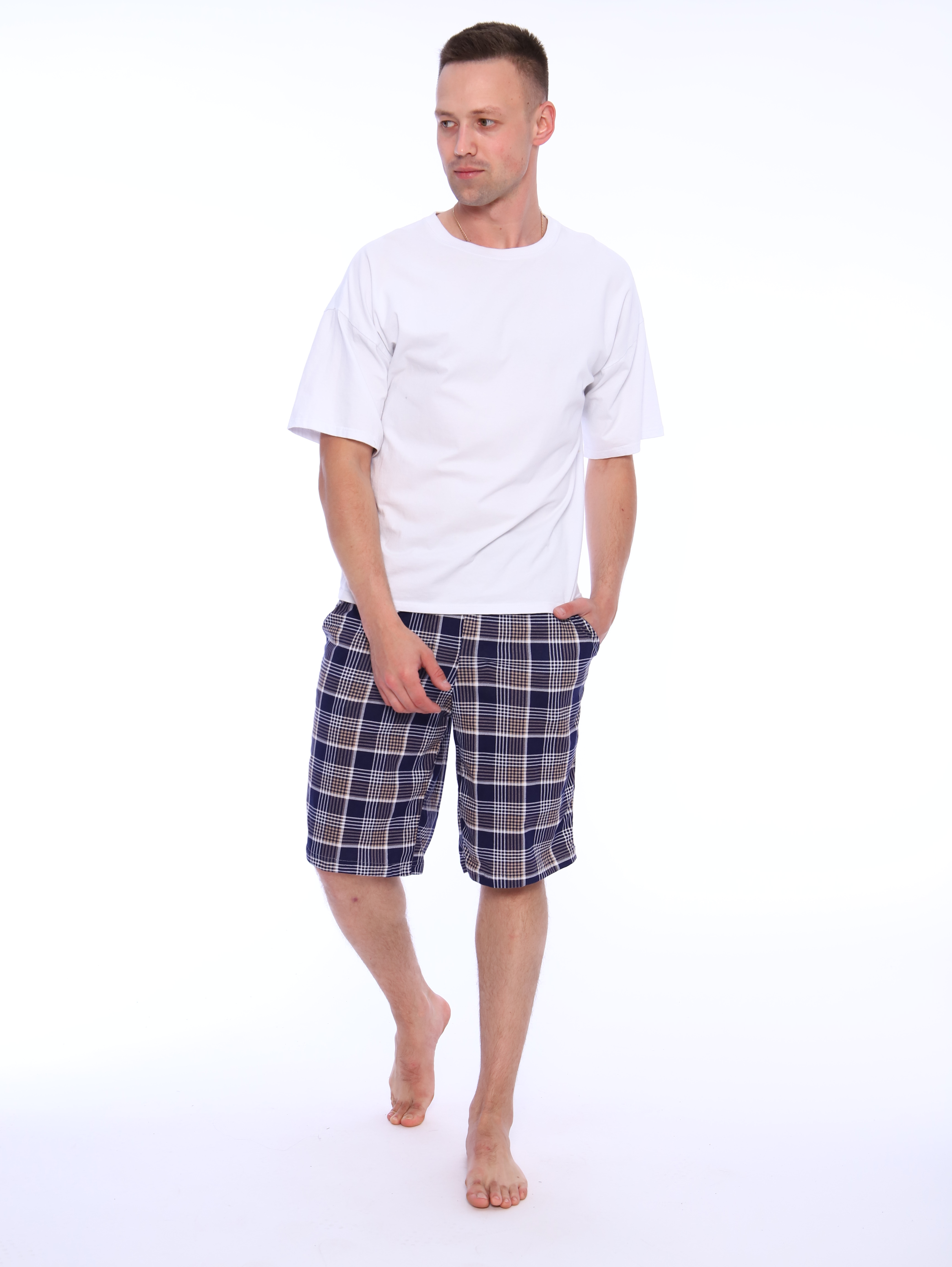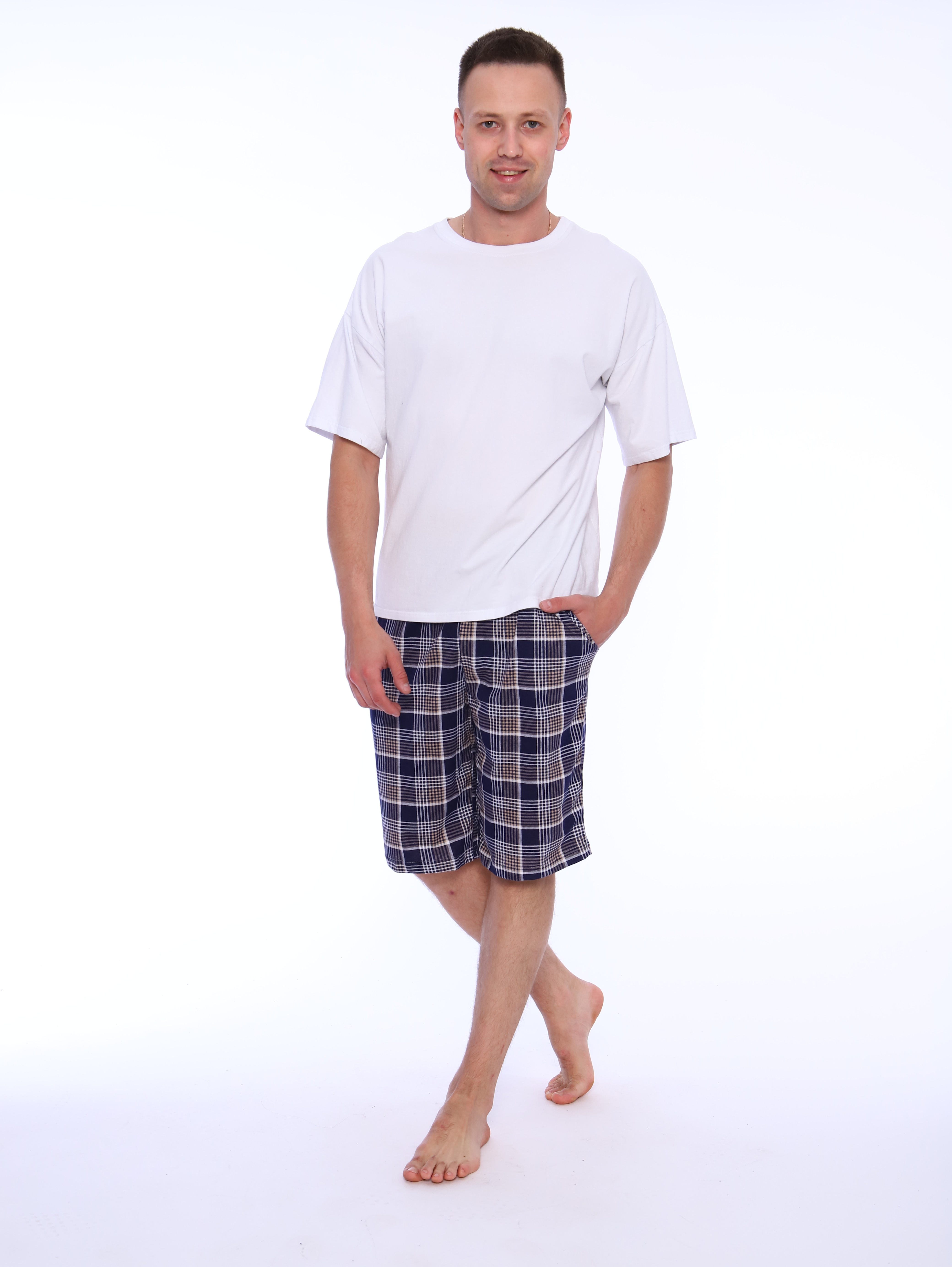 Мужские хлопковые домашние шорты с карманами по бокам.